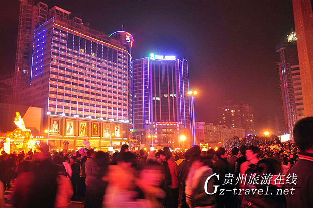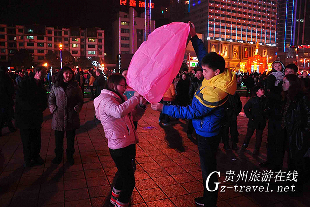 六盘水世纪广场参加元宵飞灯的市民