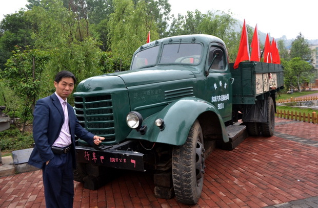 游客与解放牌汽车合影纪念