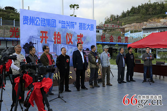 贵州旅游在线讯 11月12日,由贵州省艺术摄影学会、贵州盘兴高速公路有限公司主办,黔西南州摄影家协会、六盘水市青年摄影家协会、盘县摄影家协会、贵州旅游在线、印象黔西南网站、盘兴高速公路第四合同段协办的贵州公路集团“盘兴杯”摄影大赛开拍仪式在位于黔西南州兴义市清水河镇的盘兴高速公路第四合同段举行。贵州省艺术摄影学会主席、秘书长郑铁牛,黔西南州高速公路指挥部副指挥长、交通局局长王一中,盘县人大副主任欧阳廷宏,香港艺群摄影学会创会会长吴益胜,贵州省文化馆副教授曾银华,贵州盘兴高速公路有限公司党总支书记张金秋,黔西南州摄影家协会执行主席张德厚,贵州公路集团第三分公司副经理杨易等出席活动,贵州盘兴高速公路有限公司、黔西南州摄影家协会、兴义之窗、印象黔西南等单位代表一同参与贵州公路集团“盘兴杯”摄影大赛开拍仪式,活动由贵州省公路工程集团有限公司办公室副主任龚小荣主持。