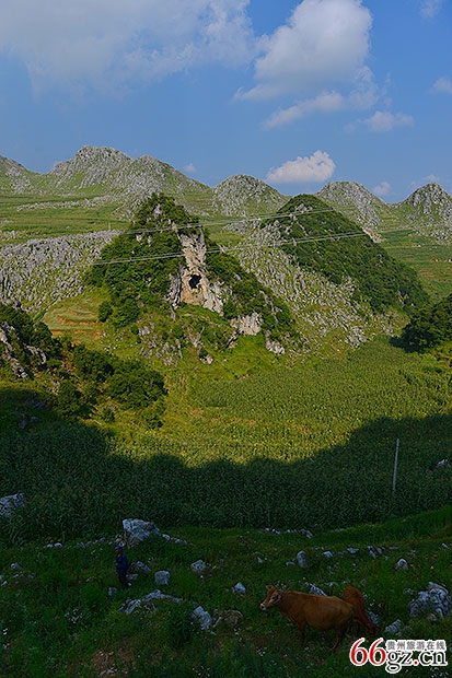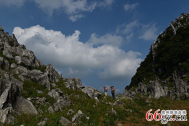 坐落在村子里的石林巍峨庄重,凸显出喀斯特地貌壮观开阔的一面。这里的苗族妇女们穿着苗族服饰,吸引了不少摄影师的目光,只听见相机“咔咔咔”的快门声不断响起。