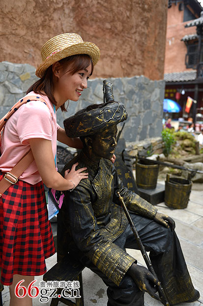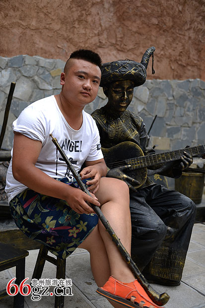 活动现场,只见表演者穿着彝族特色服饰,手拿一个长烟斗正在悠闲的抽着烟。身旁的游客走了一拨又来一拨,成为街头一道不可多得的亮丽风景线。