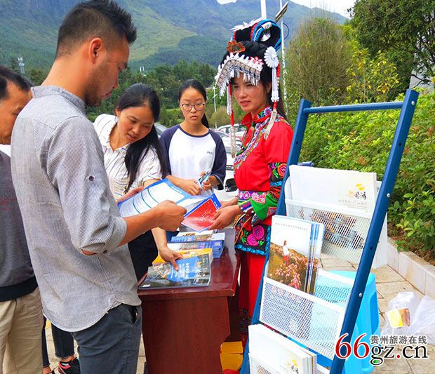盘州市乌蒙大草原景区导服工作员给游客介绍情况
