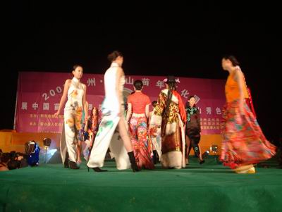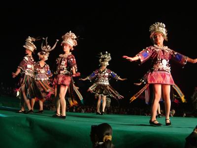 贵州雷山苗年文化周民族服饰展演于11月2日晚在雷山丹江广场举行。 服饰表演队在10月下旬曾代表中国参加在法国举办的“中国文化周”表演,在当地引起极大的轰动。这次是表演队回国的首次演出,展演的民族服饰设计均出自雷山苗族姑娘之手。