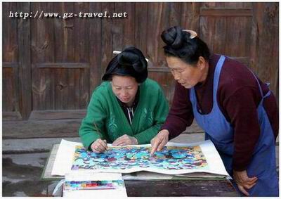 47岁的苗族女画家王明桃,85年开始作画,每年靠卖画收入2000余元,就今年1月就收入800余元。