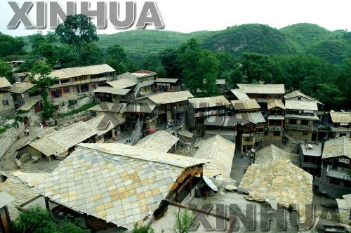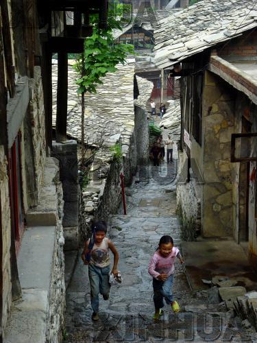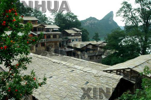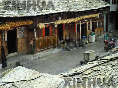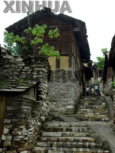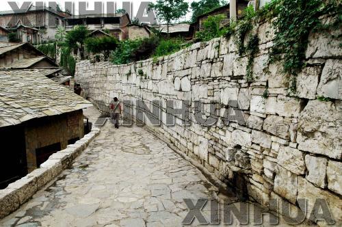 贵阳石板镇布依山寨镇山村的石墙石路。