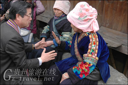 日本客人与苗族老太交流