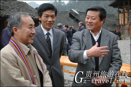 省旅游局副局长傅迎春、黔东南州副州长李再勇在郎德陪同日本国土交通省审议官丸山博先生一行