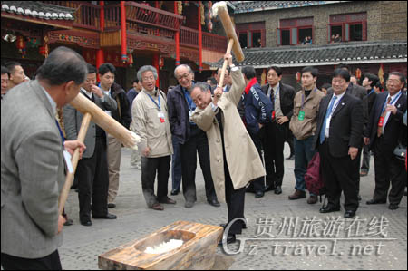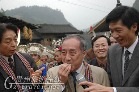 日本国土交通省审议官丸山博先生品尝到了苗族的饭菜后说,像苗族这样的饭菜和年糕,日本过去也有,但是现在在日本已经找不到了。看到这么有悠久历史的东西被完整地保留了下来,感觉非常有亲切感。丸山博说,去年贵州旅游促销团与日本旅行业协会签订了一个促进贵州旅游发展的合作意向。这次全国旅行业协会到贵州考察,是一个契机,今后还会与中国国家旅游局和贵州旅游局一起,就促进贵州的魅力向更多的日本客人介绍,推动更多的日本客人来贵州旅游。