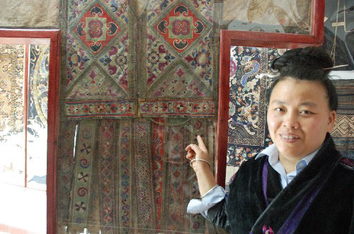 4月7日下午,苗族妇女张红宇在介绍自己的藏品。