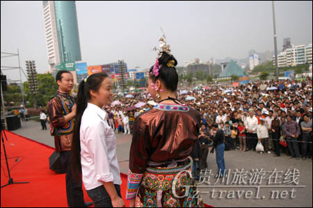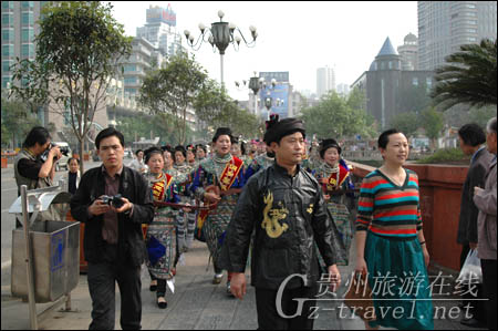 黎平县长闵启华身着民族服装率队在贵阳街头为市民展示侗乡风采