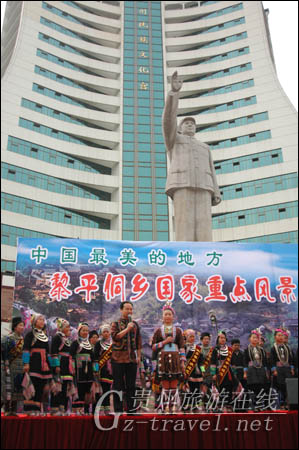 4月22日由黎平县委、县政府举办的“黎平侗乡国家重点风景名胜区旅游推介会”在贵阳市人民广场举行。来自田间地头的147名民族演员,带来了洪州平架琵琶歌、尚重琵琶歌、口江侗族大歌、九潮瑶族芦笙舞及精彩的民族服饰展示,倾倒现场的贵阳市民。表演现场还进行了黎平旅游促销,吸引众多贵阳市民的关注。