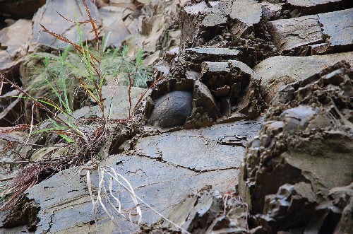 近日,在麻江县下司镇花桥村,当地科协有关人员发现这里一片崖壁上嵌着密密匝匝的“石蛋”,并会不时掉落。专家研究后认为,这片崖壁生成于5亿多年前,“石蛋”为比重较大的矿物质结核,经风雨剥蚀便会从崖壁上自然落下。