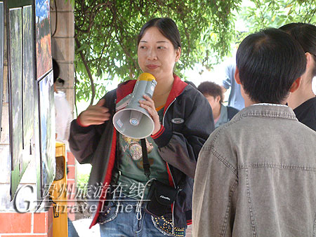 施秉县旅游局负责人向观展的同学讲解图片内容