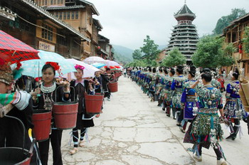 肇兴侗寨居然在法国赫赫有名。按当地人的说法,肇兴拥有“五楼五桥五戏台”,即在肇兴有五座鼓楼,有鼓楼的地方就有风雨桥,就能看到戏台。现在鼓楼和风雨桥依旧保存完整,只是戏台层次又作了部分维修。肇兴在黔东南来说也算是旅游发展得不错的地方,当地老百姓也热衷于旅游商品的兜售。在肇兴如果你一开始没有拒绝某—位妇女看一看的请求,那至少两个小时之内会有二十多位妇女要求你再看一看她们的东西,其情形只能以围追堵截来形容,让你欲拒不能。不过她们手中的东西真的不错,其中的民族刺绣品从艺术到价格都很有吸引力而且价格便宜。