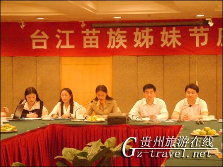 本站讯 2007年4月19日,台江县县委、县人民政府在贵阳市召开了“2007年贵州苗族姊妹节座谈会”。会上台江县县委常委、县人民政府常务副县长杨伟以及县委常委、宣传部部长张林分别介绍了2007苗族姊妹节的活动安排及致词。