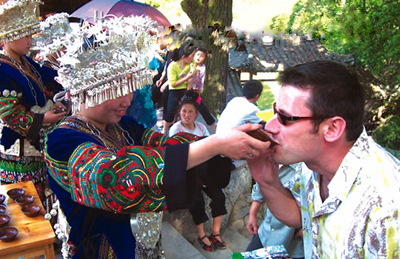 本地游客都有这样的经验,这酒品一品就行了,千万不要出手去接,否则,整杯都得喝下。外地游客不知道这些规矩,一名外地女游客进寨时看着苗族姑娘献上米酒,特别高兴,接过杯子,只得喝下了一大杯;经过第二道关、第三道关时,她仍然没有悟出道理,仍然接下杯子,结果,喝下了三大杯。