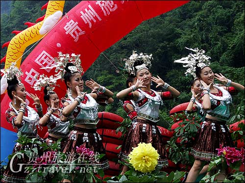 本站讯 6月20日,是中国传统节日“端午”佳节。这一天,黔东南州施秉县迎来了“2007中国·施秉第六届‘威门杯’杉木河漂流节”。美丽的杉木河畔歌声飞扬、舞步翩翩。象征吉祥的水龙表演将整个活动现场融为一片欢快的海洋。