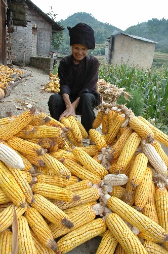 9月2日,贵州省凯里市三棵树镇赏郎村村民在掰玉米棒子