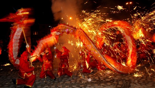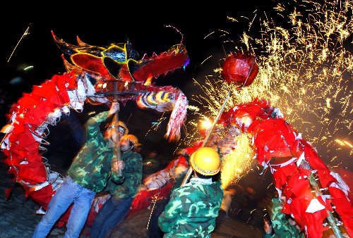 2月20日晚,贵州省台江县举行舞火龙闹元宵活动。