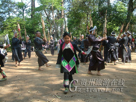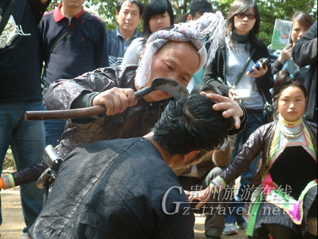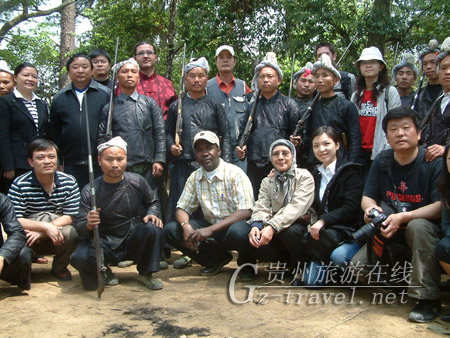 中共贵州省委宣传部网络新闻宣传管理处处长哈思挺(左前排一)、cri外籍专家与岜沙人合影