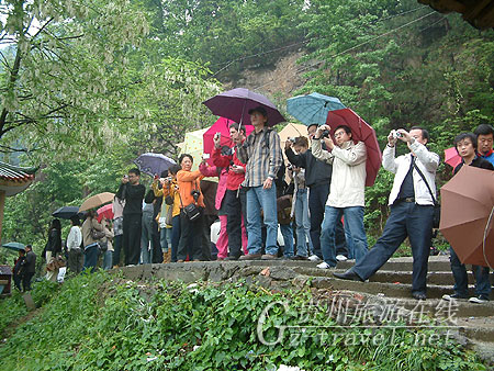 4月27日下午14点,经过雨水洗礼的西江苗寨烟雾缭绕,以其仙境般的身姿迎接着远方来的客人。远望村寨前后青山绿水,木吊脚楼依山势向两边展开,苗家进寨拦门酒,特色长桌席间少女飞歌敬酒,让外籍专家们发出赞美的声音“贵州真是太美了;xijiang beautiful ” !