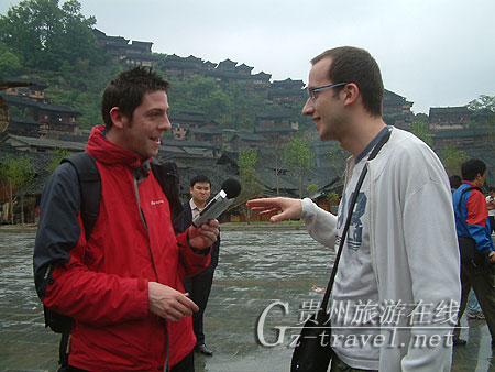 英语外籍专家、里奇在苗寨愉快地采访外籍游客