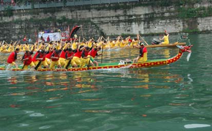 地处贵州省黔东南苗岭山区的中国历史文化名城--镇远,过端午节的气氛浓烈,独具风韵,并极有情趣。一年一度的端午龙舟赛是这座名城热闹欢愉的民间节日文化的重头戏,名扬四海。