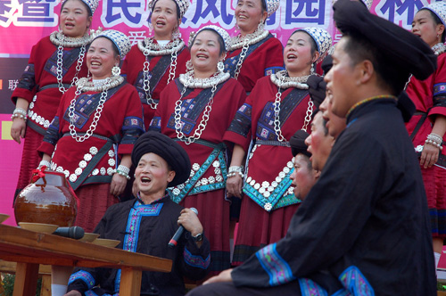 7月11日,苗族群众演唱苗族多声部无伴奏无指挥原生态歌曲《凯棠苗族大歌》。