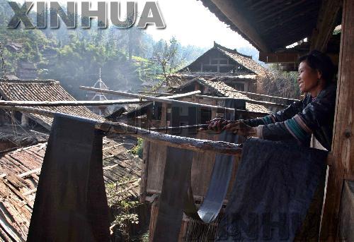 11月29日,贵州侗族妇女在晾晒“亮布”。