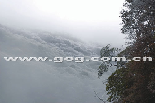 12月22日,气温骤降,雷公山国家森林公园迎来入冬以来第一次凌挂、雾凇等自然美景,山上白茫茫一片。