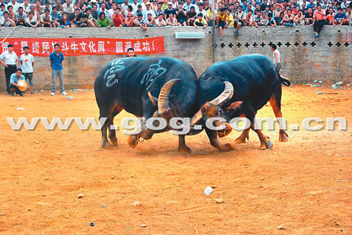 阵阵黄沙扬起,斗牛场中两头体型剽悍的“牛王”用各自强劲的犄角死死抵住对方,展开拉锯战,场外围观的上万观众屏住呼吸,睁大眼盯着这场“强强对决”。