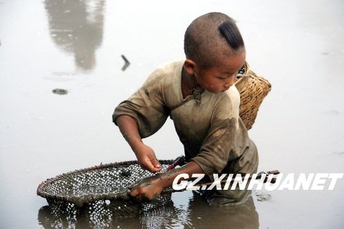 2009年8月1日,高塘苗寨的男女老少齐下鱼塘捉鱼。