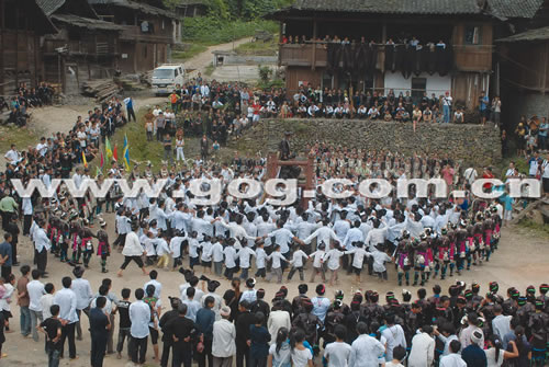 8月5日,黎平县双江乡黄岗侗寨的侗族同胞迎来一年一度的“喊天节”。“喊天节”又称“祭天节”或“求雨节”,时间为每年农历六月十五日前后。节日里,将举行祭天仪式、吹芦笙、斗牛、抬官人、唱侗族大歌等表演。
