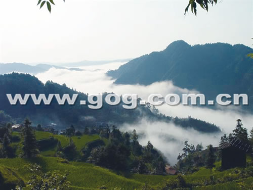 8月17日上午锦屏县固本乡苗庄苗寨脚下的大峡谷出现雾海奇观。