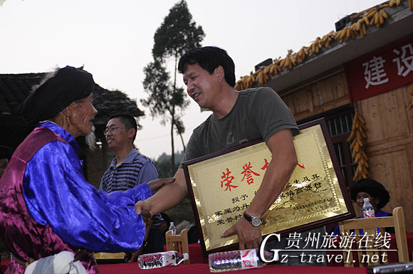 丹寨县县长龙先金参加“荣誉村民”的授牌仪式