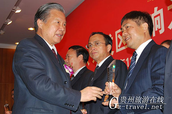 11月27日,丹寨县委副书记、县长龙先金在接受奖杯。