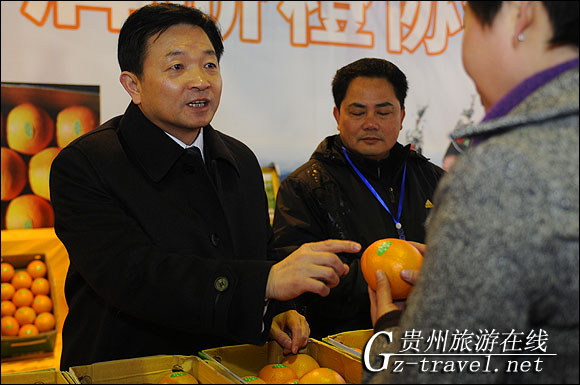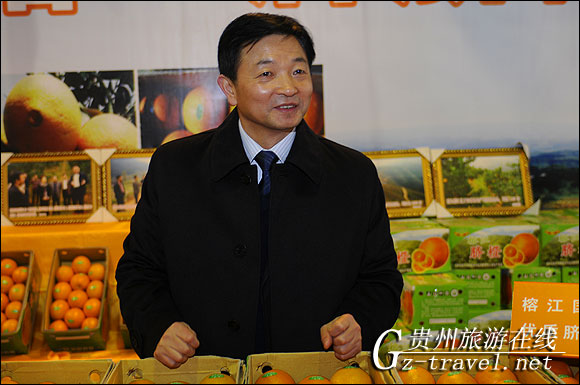 本站讯 2009年12月16日,贵阳五里冲水果批发市场内,榕江在这里举行的“五榕”牌脐橙2009年农产品展销会,榕江县县委书记白跃军、榕江县长肖克率县农业、科技、招商、宣传等部门负责人一起来到贵阳帮助果农搞流通、找市场。