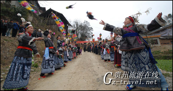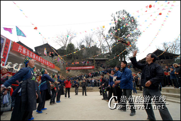 2010年2月18日,贵州省丹寨县龙泉镇高寨村的水族村民举行“花毽艺术节”迎新活动,高寨村水族村民和来自周边的几千名各族群众欢聚一堂,以打花毽比赛的活动形式共贺新春。据悉,打花毽是水族同胞一种特有的民间体育运动,多在各类节日中开展。