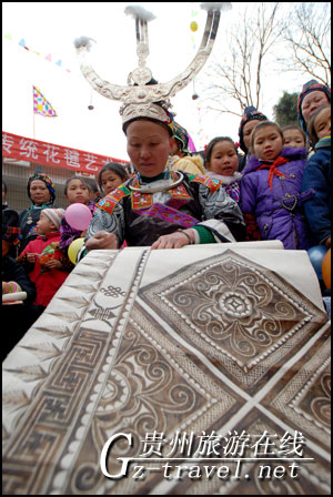 2010年2月18日,贵州省丹寨县龙泉镇高寨村的水族村民们开展迎新春颂水书、绘制蜡染表演活动。来自周边几个村寨的水族村民们在现场展示了精湛的蜡染绘制、水书颂唱技艺,使这些古老的水族民间传统技艺得到很好的传承。蜡染、水书都是第一批国家级非物质文化遗产。