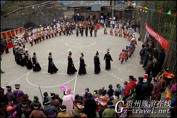 排调镇羊巫村的苗族村民在跳芦笙舞