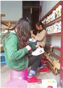 镇远古镇上彩绘鞋子创业,两位艺校大学生成了网络红人。