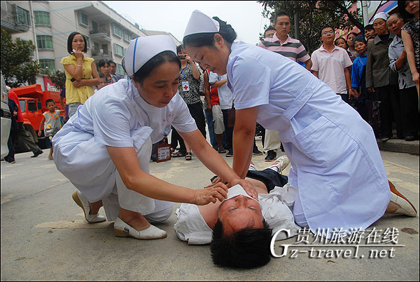 2010年9月9日,贵州省黔东南苗族侗族自治州丹寨县红十字会和红十字志愿工作者在县城举行了“世界急救日”救护技能演练和宣传活动。当天的救护演练现场中,上百名前来赶集的各民族群众观看了红十字志愿工作者们为伤员进行止血包扎、骨折固定与搬运、心肺复苏等自救互救技能演练,上了一堂生动的自救互救技能课,掌握了一些基本的卫生救护技能,提高了自救互救能力。