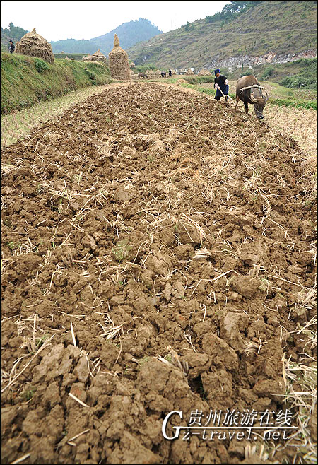 贵州省黔东南苗族侗族自治州丹寨县扬武乡羊排村,苗族妇女吴贤芬正在犁地
