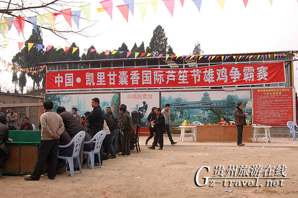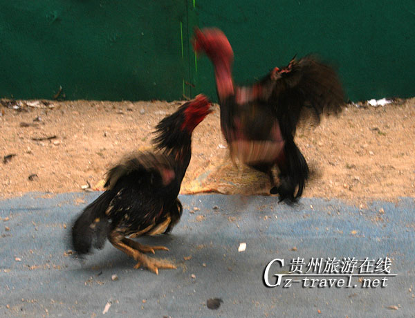 下午13:30,在州民间斗鸡场举行了雄鸡大赛,裁判宣布比赛开始,赛场上两只性情凶猛的公鸡开始决斗,它们激烈地互相啄咬起来,还会用距劈击对手。两只公鸡相斗了很久,都有疲惫之态,裁判用水将它们喷醒,斗鸡重新投入战斗,直到有一只公鸡败下阵来,场面是相当激烈。