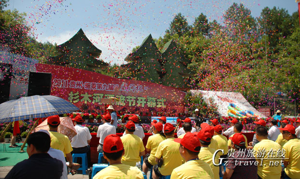 7月26日,2011中国·贵州施秉第九届“威门杯”杉木河漂流节在漂城施秉杉木河畔隆重开幕,省委副书记王富玉发来贺信,黔东南州、施秉县相关领导出席开幕式。