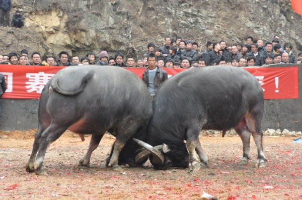 据悉 春节期间,在贵州榕江县七十二寨的中心——乐里镇斗牛场上,当地的侗族乡亲举办斗牛友谊赛,吸引了附近群众以及外来游客共计2万多人前来观战,热闹的场景给新春增添了喜庆气氛。
