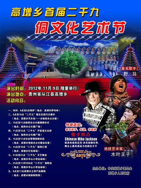 贵州旅游在线讯 首届“二千九”侗文化节将于明日2012年11月9日在从江县高增乡高增村隆重举行,目前各项筹备工作准备就绪。