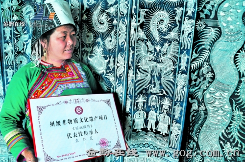 5月4日,位于榕江县塔石乡宰勇村乌吉新区的榕江县苗族服饰加工坊里,工人们正在忙碌着刺绣,制作百鸟衣。榕江县苗族服饰加工坊由黔东南州非物质文化遗产项目《苗族服饰》代表性传承人袁仁芝等创办,从事苗族百鸟衣及其他苗族蜡染、刺绣产品制作。目前,该加工坊生产的产品已经销往贵阳、北京、上海、广州及香港、台湾等地。