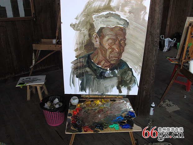 此次现场写生过程中,画家们不管是画人物还是风景,作画中认真倾听对象的声音来反复推敲画面的音响,然后用刀和笔进行刚柔相济的“写意”的画面布置。我们看到在画家赵竹作画中,往往从表现主体(身、头、手)入手,小写意的笔色情趣中,利用各种干湿、面线、冷暖凸现着微妙的形色变化,最后在五官上用书法意笔勾勒着不同的神情,并时时调整主体与背景的强弱疏密对比和边线的微妙处理……赵竹在不同的画面上寻求不同的语言体系,绘画语言影响着作品的格调高低,规划因性情所至的创新,画法随对象而变的创造。