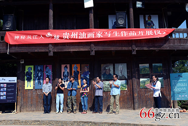 贵州旅游在线讯 10月2日,由中共从江县委宣传部、贵州旅游在线主办,从江县旅游局承办的“神秘从江入画境”写生展在最后一个枪手部落——岜沙旅游景区拉开大幕。此次写生展为期7天,展出贵州省四位画家在黔东南州从江县长达20天现场写生所得的“神秘从江入画境”百余幅画作,展出期间免费向游客开放。